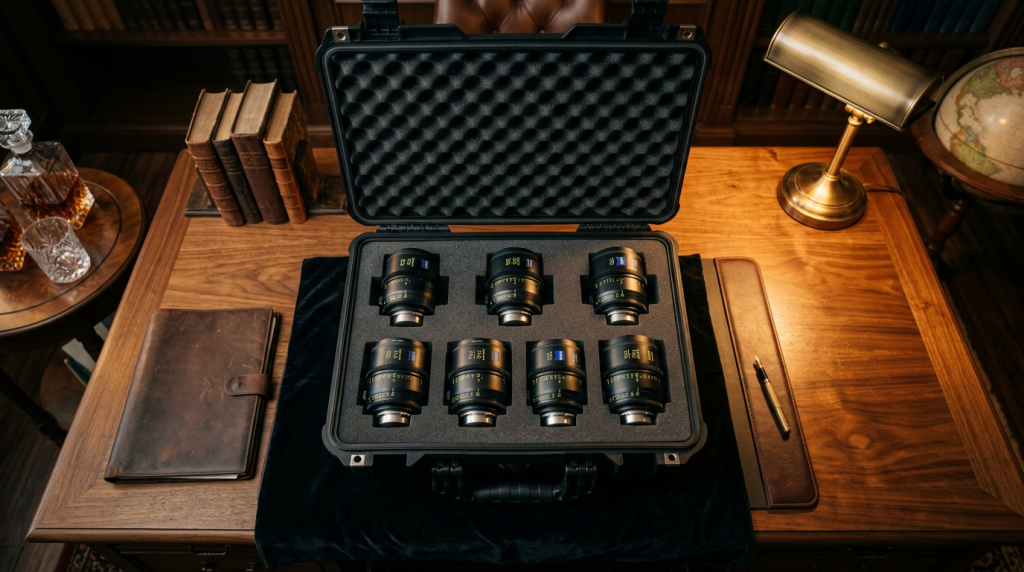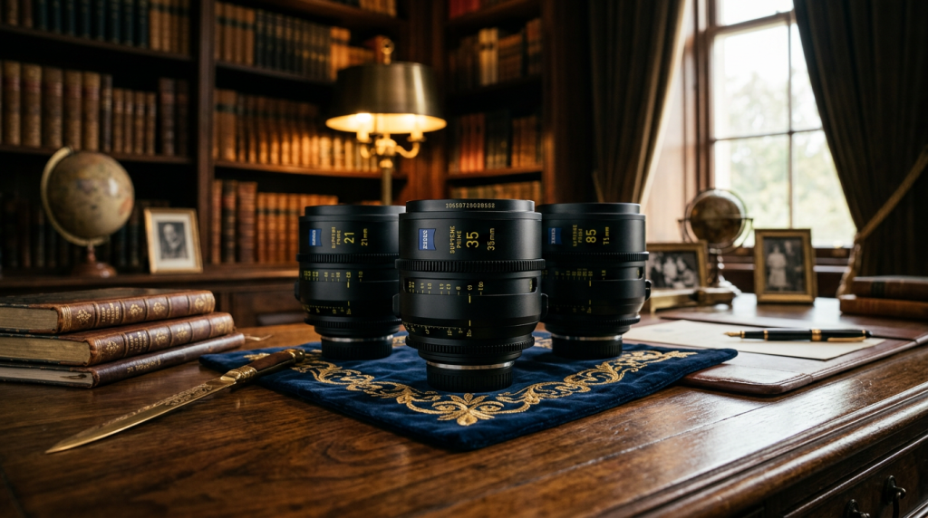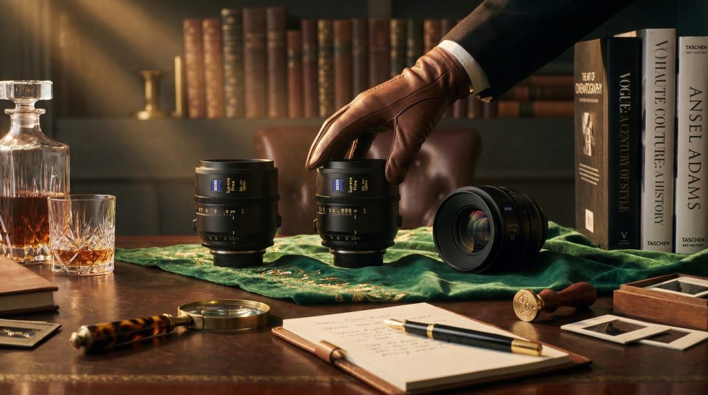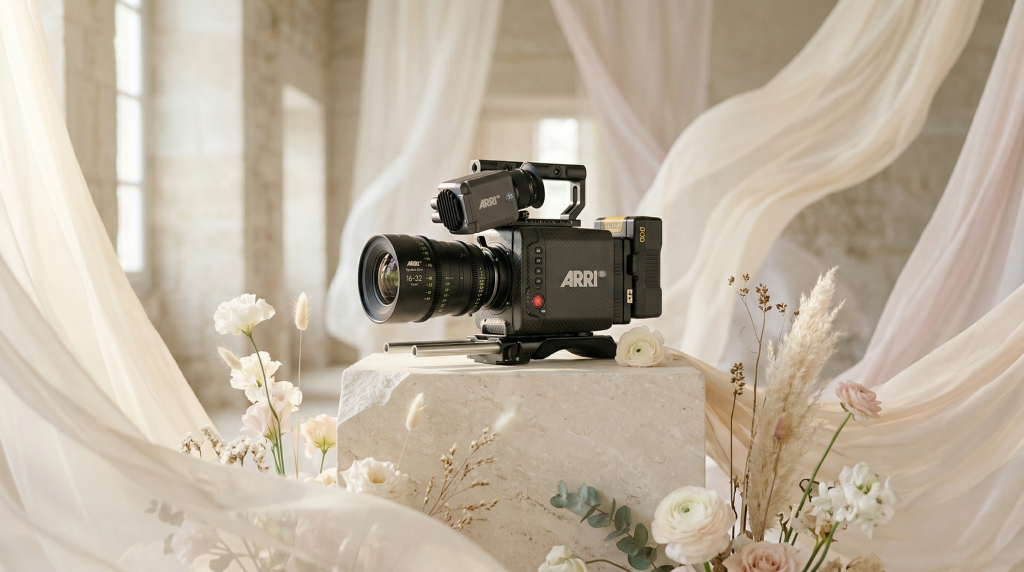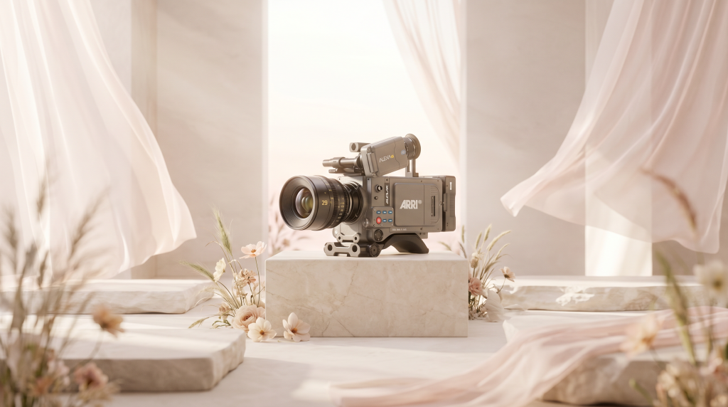 Am realizat o ședință foto AI demonstrativă, având în centru produse din industria cinematografică: camere video (ARRI, Sony), lentile cinematografice (Zeiss, Atlas) si echipamente profesionale de filmare.