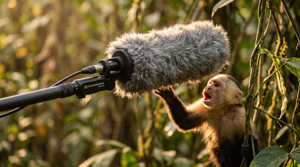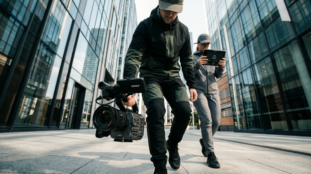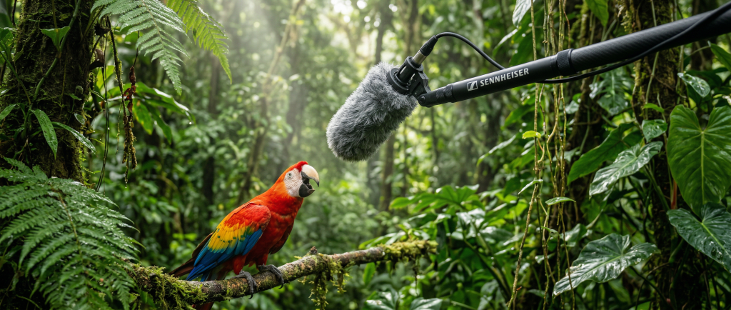Așadar, ne-am dat singuri un test intern, la Parcfilm. Am creat un brief de producție foto, cu patru scenarii și setupuri diferite, pe care l-am predat spre execuție colegilor din postproducție. Ei au realizat imaginile pe baza direcțiilor stabilite: produse din zona cinematografiei (camere, lavaliere, microfoane etc.) plasate în patru tipuri de medii — junglă / natură, mediu urban, studio abstract / minimalist și univers „quiet luxury”.